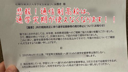 どうも、娘が女子高生(17)の僕です。 先日、娘が通っている通信制高校から衝撃的なお知らせがありました。 【重要】JRの規則改正に伴う通学定期券等の発行停止について 皆さまにおかれましては、本年度、本校教育活動へのご理解ご協力を賜り有難うございまし…