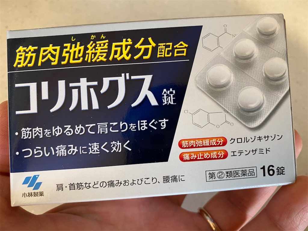 マッサージ機などは試しましたし、毎週のようにマッサージにも通っていますが、それでも改善しないわけで、そうなると現代薬学の力を借りるしかありません。